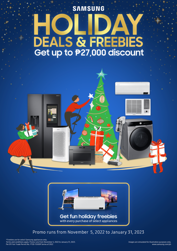 This Christmas, treat yourself and your loved ones with home appliances that will upgrade their homes–and enjoy huge savings while you still can! The Samsung Digital Appliances’ Holiday Sale runs until January 31, 2023 only, and is available in participating Samsung Authorized Dealers and at samsung.com/ph.