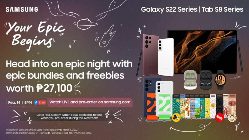 Head into an epic night and join Team Galaxy’s Bea Benedicto live on February 14, 2022, 5:00 PM via Samsung’s Facebook page. Pre-order via the Samsung Online Store during the live to get limited-time deals worth up to PHP 12,000 on top of the regular pre-order offer: