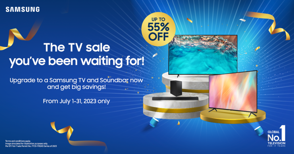 Don’t miss your chance to take home a Samsung TV or Sound Device at the biggest cash discounts yet. From the newly launched Neo QLED and Samsung OLED TV to the boombox-style Sound Tower speakers, the Samsung audio-visual line up is up for grabs at up to a whopping 55% off (that’s up to Php 55,000 in savings!). Now is the best time to upgrade to a bigger size or better resolution Samsung screen, and turn any room into the home cinema of your dreams.