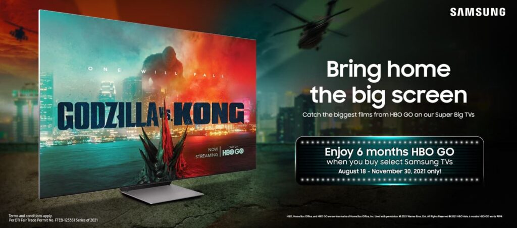 MANILA, Philippines – August 27, 2021 – Miss the feeling of watching the latest films at the cinema? Samsung Philippines is giving you the next best thing – now’s the chance to bring the big screen experience home and get a 6-month subscription to the most anticipated blockbusters and award-winning series from HBO GO when you purchase select TVs.