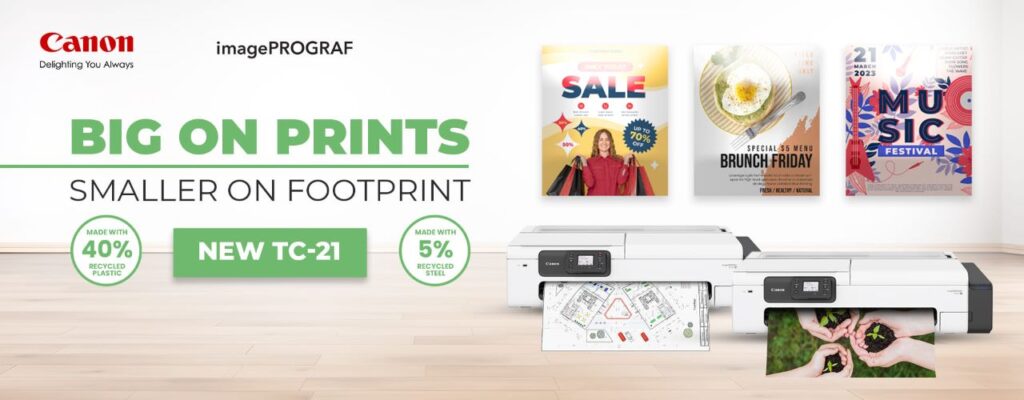 PHILIPPINES – Canon announced the new imagePROGRAF TC-21, successor to the imagePROGRAF TC-20 compact desktop large format printer. As a step up, the Auto Sheet Feeder (ASF) in the imagePROGRAF TC-21, has been enhanced to meet varied printing needs such as production of publicity materials, architectural and design drawings. The printer’s tiltable panel and flexibility in installation location improve the user experience as adjustments can be made easily. For the first time ever, a large-format printer in the imagePROGRAF series has recycled steel in a part of its body, making it more environmentally friendly.