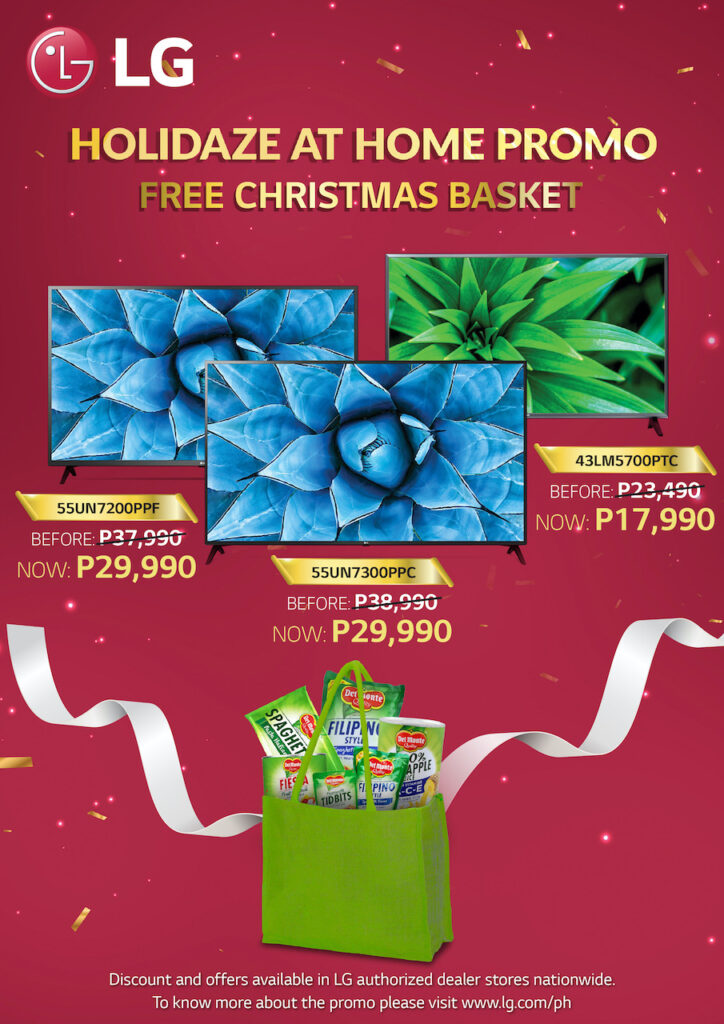 With LG’s Holidaze at Home Promo, customers can get up to 40% off and a free Christmas basket or LG XBoom Go speaker on select LG TV models. The TV models included in the promotion will be marked down from November 20, 2020 to January 15, 2020. As an added bonus, each TV purchase from the Holidaze at Home promo will also come with either a portable LG XBoom Go speaker or an LG Christmas basket courtesy of LG. These special freebies will be available in selected authorized dealer stores. To be eligible for the promo, purchases must be made via straight card or cash payment in participating LG authorized dealer stores. So grab your LG TVs for as low as P17,990 and enjoy your special holiday gift this Christmas.