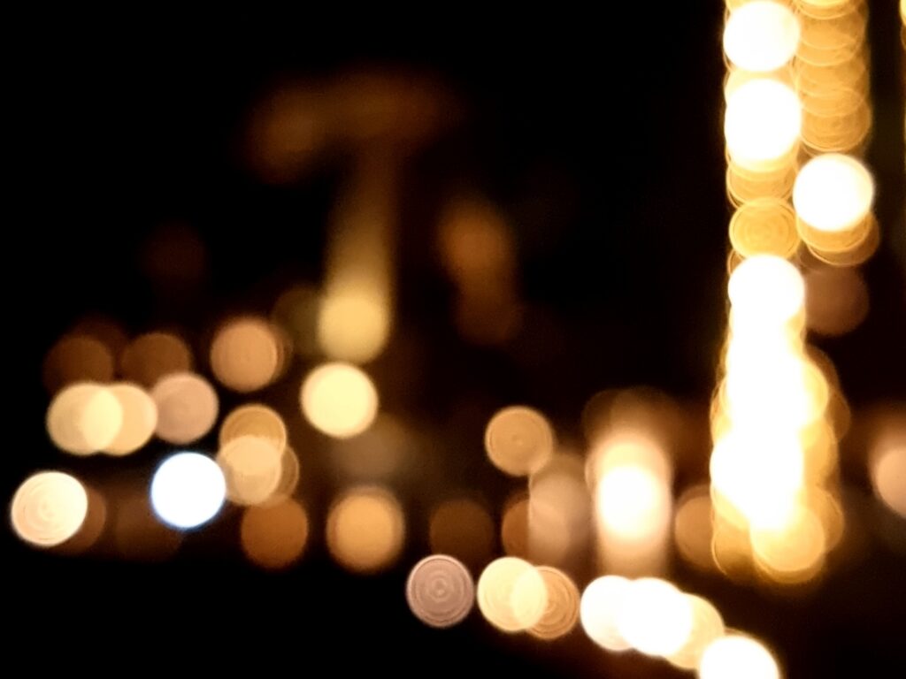 Settings: ISO 1600, Shutter speed 1/50s; scroll left in Manual Focus mode to blur lights