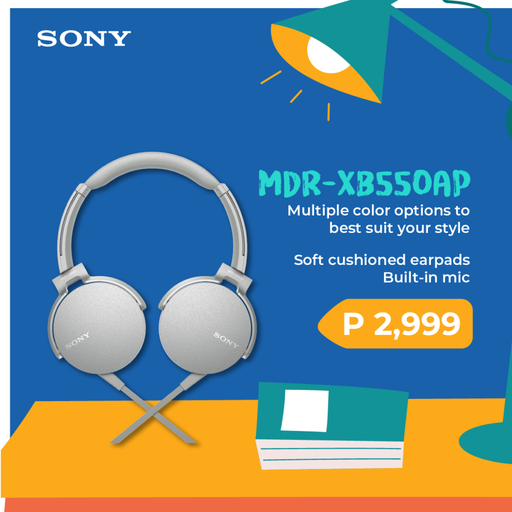 You can still achieve a stylish look even when you’re studying from home. Look no further as the MDR-ZX110 and MDR-XB550AP Wired Headphones will match your style, starting at only P1,499.