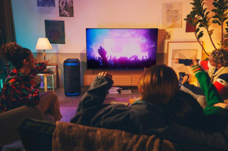 A combination of TV sound and the SRS-XV800’s two rear tweeters and X-Balanced Speaker Units boost your TV watching experience by enhancing the deep bass and realistic high-frequencies. The sound waves bounce off the walls to surround you with sound. The TV Sound Booster function[5] lets you enjoy the enhanced sound of audio-visual contents, such as live performance videos and movies, and immerses you in everything you’re watching.