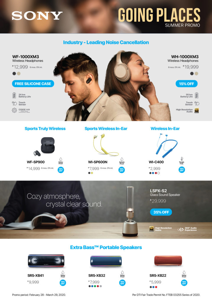Make this a summer to remember, expand your gears, grab the best deals and get sizzling discounts with Sony’s Going Places Summer promo. Promo runs from February 28- March 29, 2020.