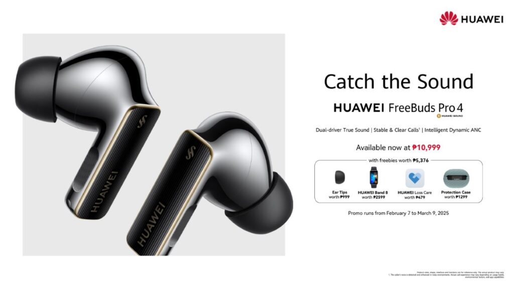 The HUAWEI FreeBuds Pro 4 is available for PHP 10,999 on Shopee, Lazada, TikTok, HUAWEI Online Store, and HUAWEI Experience Stores nationwide. Secure your HUAWEI FreeBuds Pro 4 and get a free Silicone and Shape-Memory Foam ear tips inside the box (worth PHP 999), a protection case (worth PHP 1,299), a HUAWEI Band 8 (worth PHP 2,599), and a 1-year HUAWEI Loss Care Service (worth PHP 479) good for one-time use.