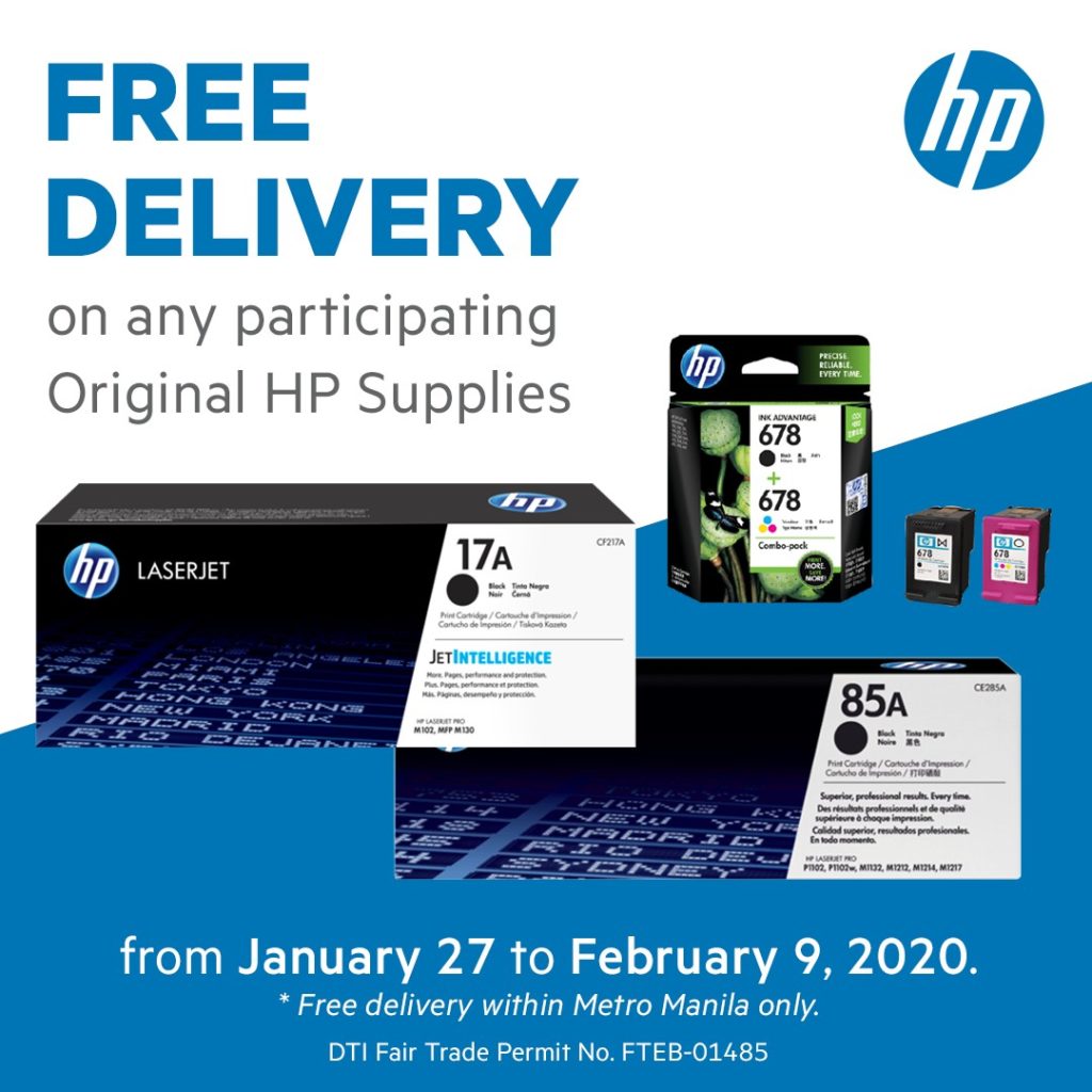 From January 27 to February 9, 2020, every purchase of original HP Supplies at participating online stores entitles buyers to free deliveries within Metro Manila.