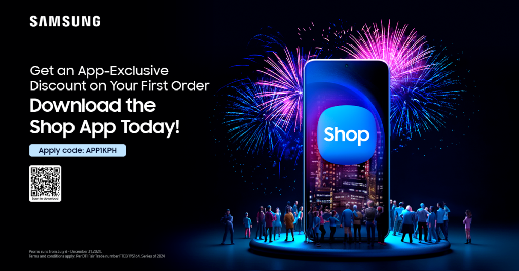 Samsung Shop App is available on the Google Play Store, and the App Store. To download and install the Samsung Shop App and take advantage of the promotions on offer, please visit https://www.samsung.com/ph/apps/samsung-shop-app/, or scan the QR code to download.