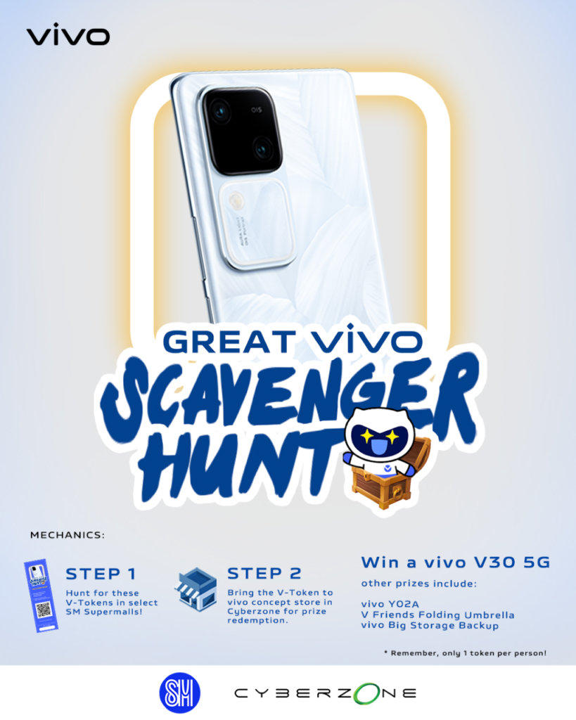 Following the successful launch of the vivo V30 Series, the brand is kicking off the Great vivo Scavenger Hunt starting April 1. This interactive activity will take place both physically at selected SM malls in Metro Manila and online, inviting all vivo enthusiasts to participate for a chance to win fantastic prizes.