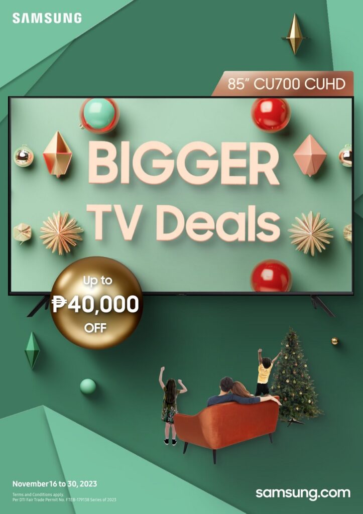 Enjoy bigger holiday celebrations and save up to Php 40,000 on an 85” Samsung Crystal UHD Smart TV and better deals coming your way for a more immersive home entertainment experience!