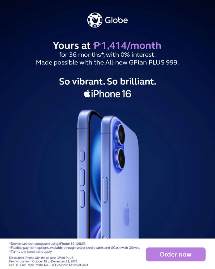 These deals make owning the latest iPhone 16 attainable for more Filipinos, reinforcing Globe’s role as the Philippines’ mobile leader. Visit https://new.globe.com.ph/ to learn more.