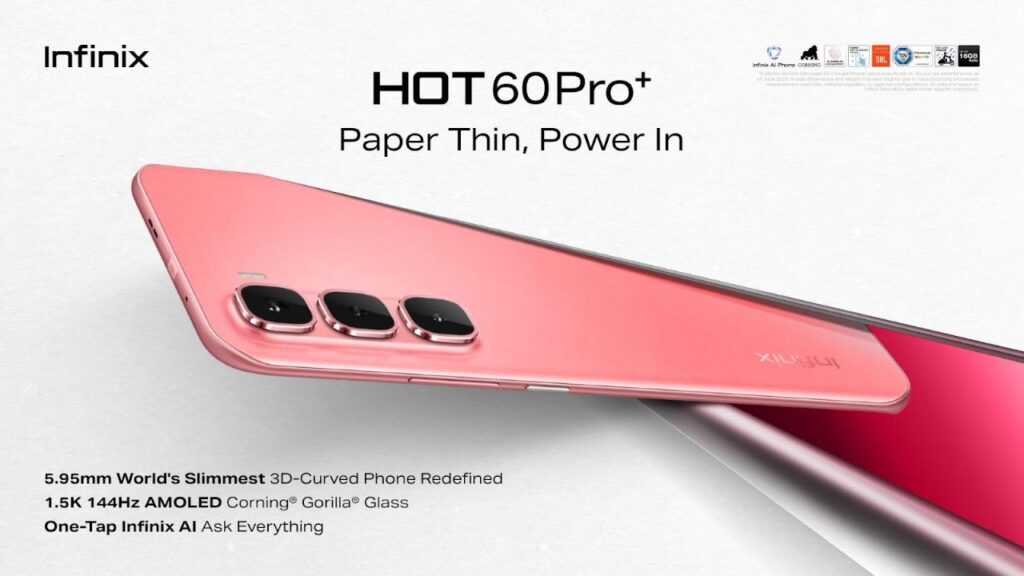 MANILA, PHILIPPINES, AUGUST 4, 2025 — Infinix today unveiled its latest HOT 60 Series lineup, including the HOT 60 Pro+ and HOT 60 Pro. Leading the series, the Infinix HOT 60 Pro+ redefines slim smartphone design with a groundbreaking 5.95mm ultra-slim body, setting a new global benchmark as the world’s slimmest 3D-curved screen phone under P9,000.