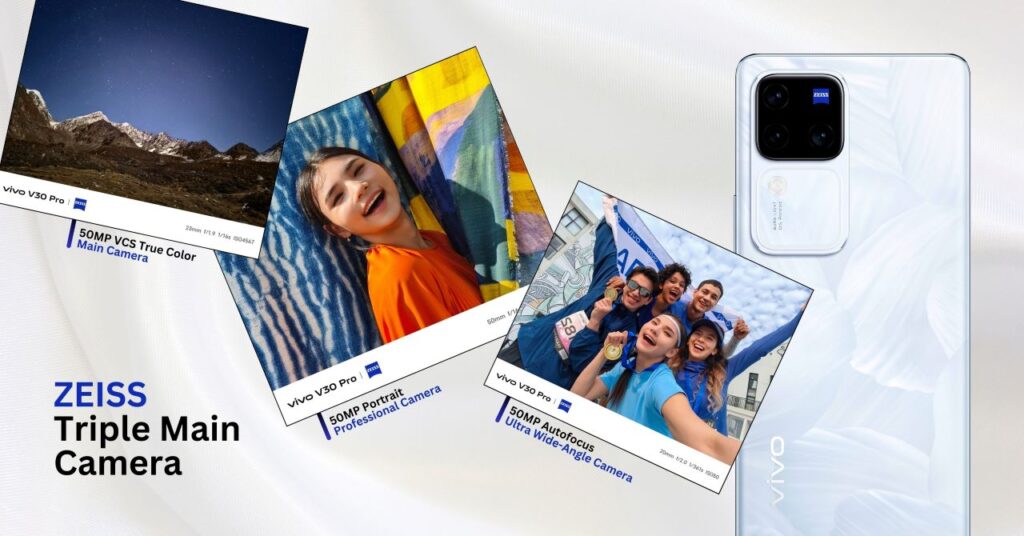 The vivo V30 Pro comes with ZEISS Triple Main Camera, each boasting flagship quality comparable to premium devices at a higher price, elevating the standard of ZEISS in mobile imaging with unparalleled advancements.