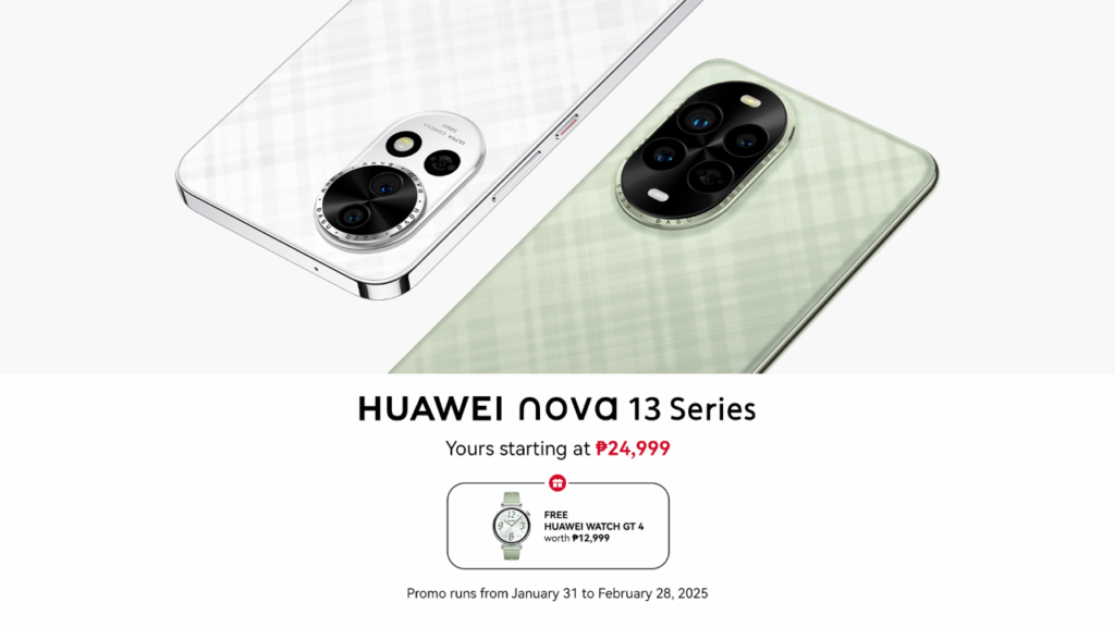 The HUAWEI nova 13 is available for PHP 24,999 on Shopee, Lazada, TikTok, HUAWEI Online Store, and HUAWEI Experience Stores nationwide. Secure your HUAWEI nova 13 from January 31 until February 28 to get a freebie HUAWEI WATCH GT 4 (worth PHP 12,999).