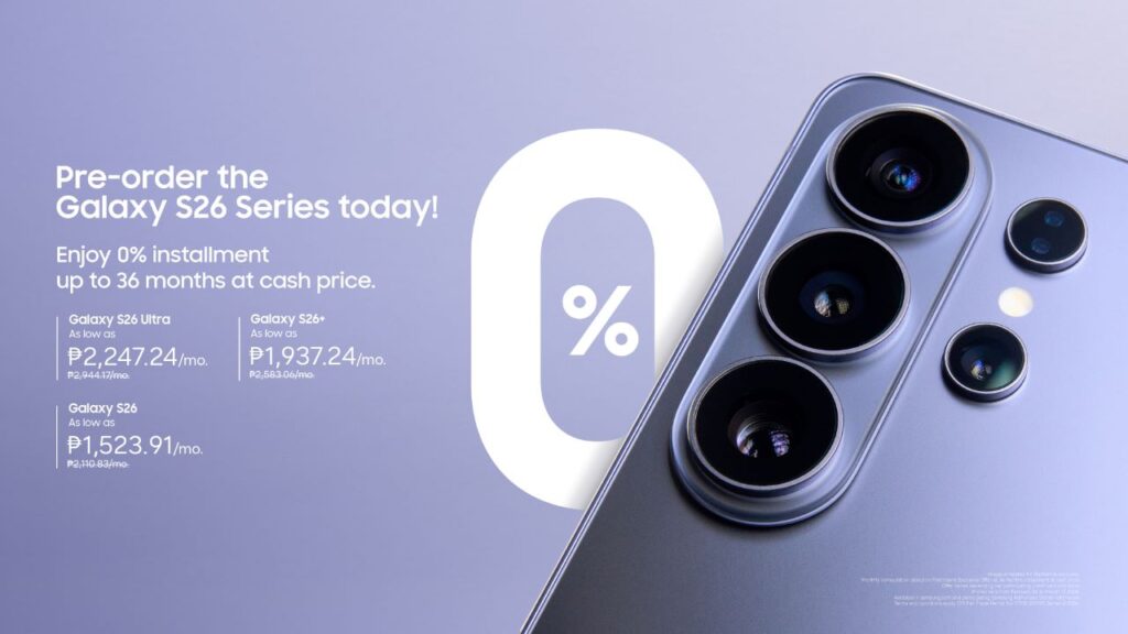 From now until March 17, pre-order and enjoy FREE Double Storage worth up to ₱14,000 plus up to 18% savings and 0% installment up to 36 months at cash price via UnionBank, BDO, BPI, Metrobank, HSBC, and PNB. Get up to 14% off with 0% installment up to 24 months through EastWest, Security Bank, HSBC, and Chinabank at participating Samsung Authorized Stores nationwide. Online shoppers can also score up to 18% savings via Samsung.com (until March 8), Abenson.com, Lazada, and Shopee.