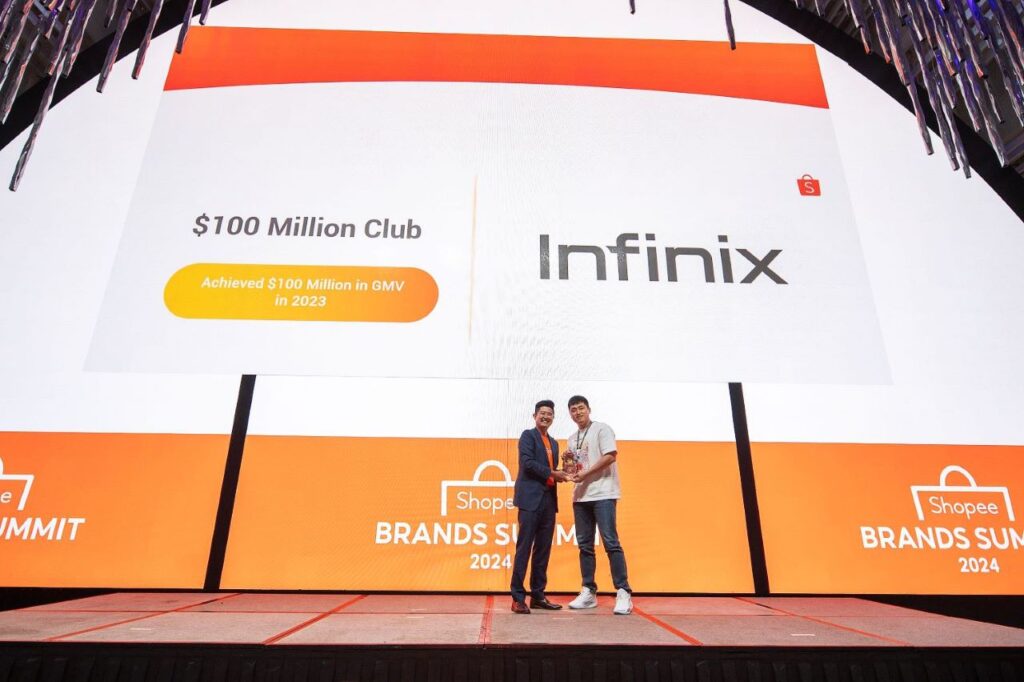 Manila, Philippines 26 February 2024 – Infinix, the trendy tech brand crafted for young consumers, proudly announces its induction into Shopee’s $100 Million Milestone Brand Partners Club in 2024. This esteemed award recognizes Infinix’s outstanding achievement in surpassing a total sales revenue of over $100 million on the Shopee platform, in conjunction with Shopee Brands Summit 2024.