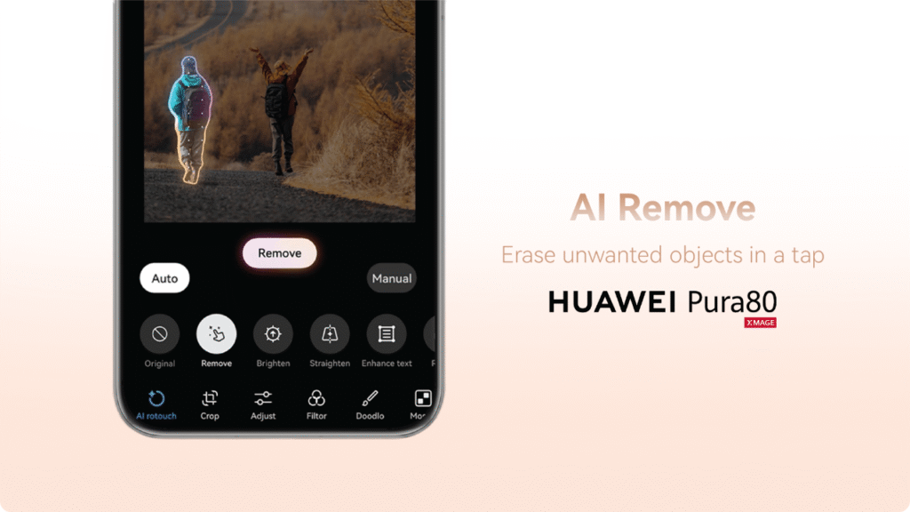 The HUAWEI Pura 80 lets users experience seamless AI features right at their fingertips, integrating intelligent, AI-powered functions into daily life to make every interaction smart and effortless. Users can edit photos easily with AI Removal, helping to remove unwanted passersby or objects with a single tap, so images stay clean and focused on the subject matter. AI Gesture Control adds a new layer of interaction, letting users engage with their device without touching the screen by airscrolling, airpressing or holding your palm out to enable a Grabshot that allows for instant photography.