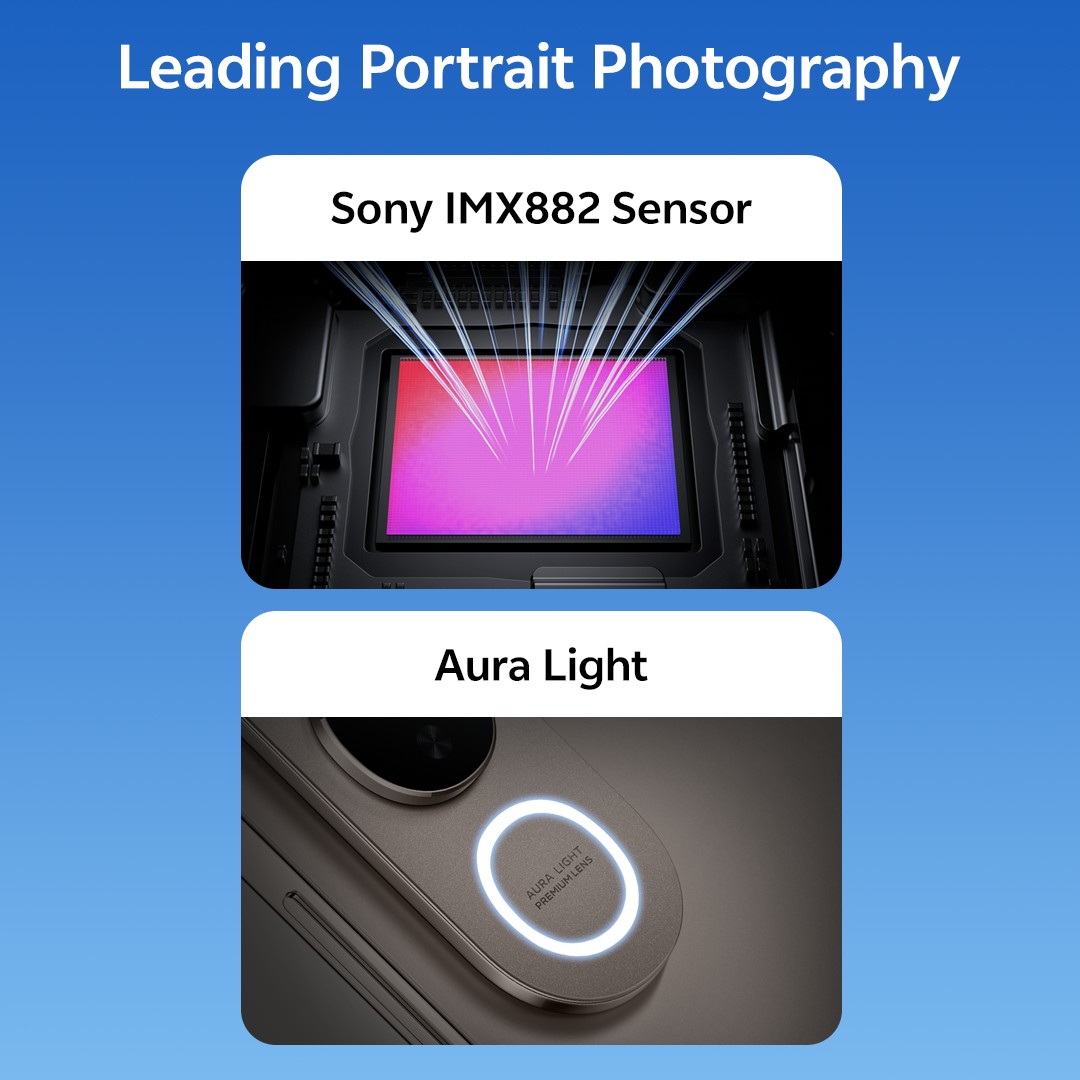 - 50MP Sony IMX882 Camera with Aura Light – Capture vibrant, clear, and well-lit photos even in low light.