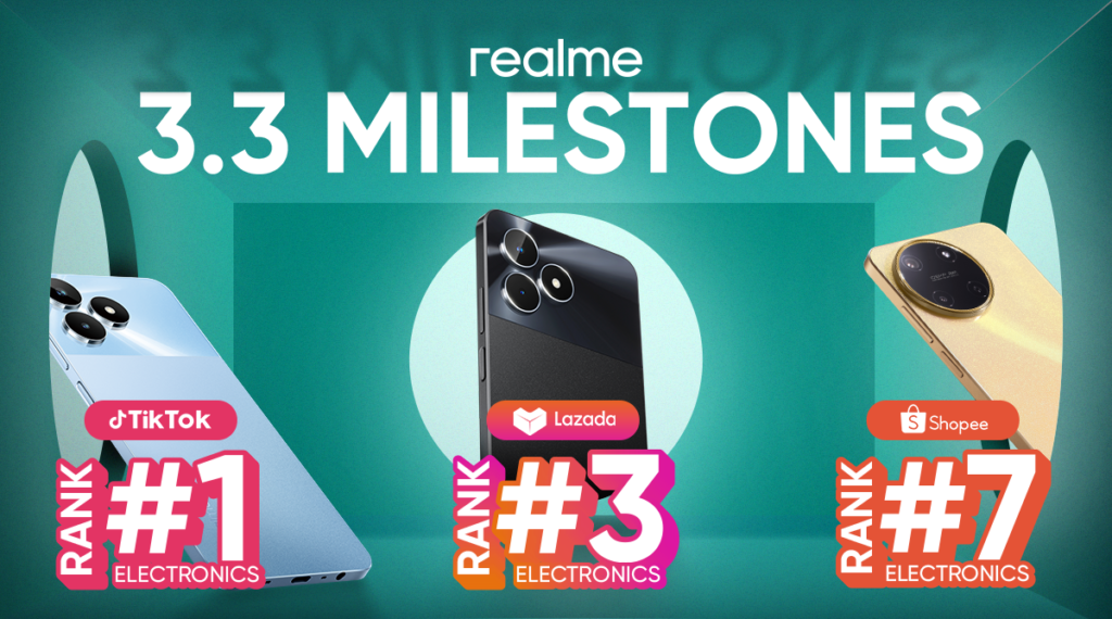realme Philippines maintains its strong industry presence after achieving another milestone in the e-commerce scene. The smartphone brand concluded the recent 3.3 sale on a high note, hailed as one of the top-performing brands in the Mobile category on TikTok, Lazada, and Shopee.