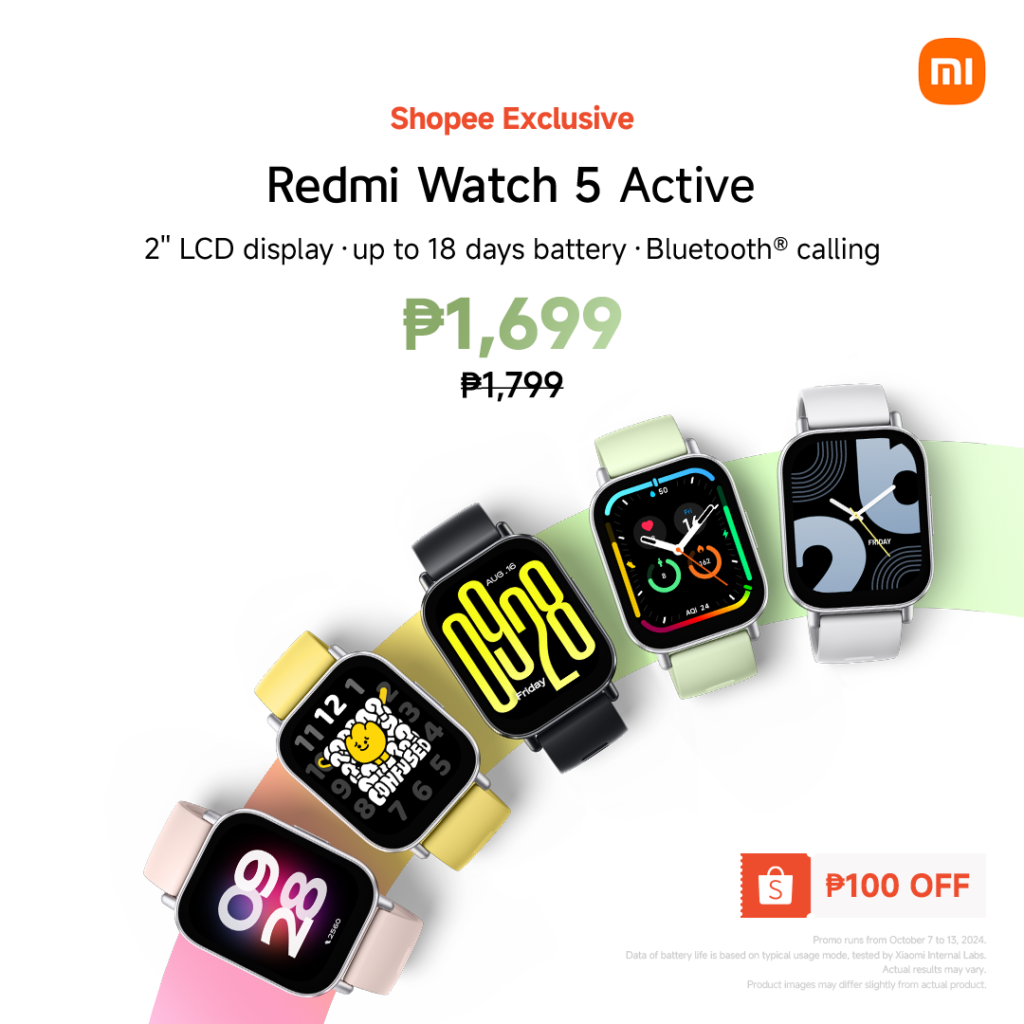 But that’s not all – Xiaomi has another surprise today! Aside from the Redmi 14C, the Redmi Watch 5 Active is now also available starting today. The Redmi Watch 5 Active has a clear 2-inch LCD display, Bluetooth calling capabilities, and packs a battery that lasts up to 18 days. It’s available at an SRP of P1,799, but you can get it at a special early bird price at P1,699 when you buy it at the official Xiaomi store on Shopee!