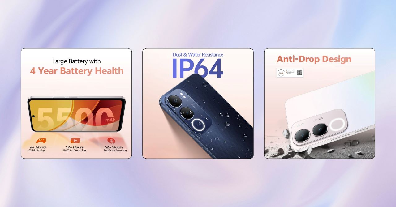 The vivo Y19s doesn’t just look good, but it is also built for quality and endurance. Powered by a long-lasting 5500mAh battery with a four-year battery health and equipped with IP64 dust and water resistance, this phone is ready for any adventure. Its SGS 5-star drop-resistant body adds another layer of durability, making it a resilient companion that stands up to daily wear and tear.