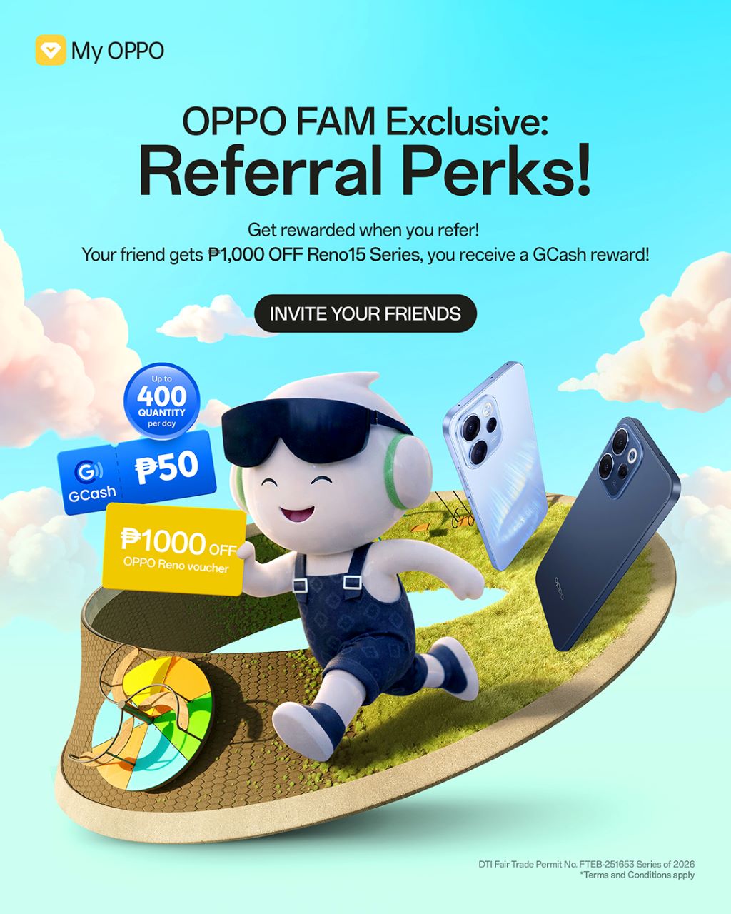 - New users who sign up via the referral link receive a ₱1,000 discount voucher for the latest OPPO Reno15 Series 5G