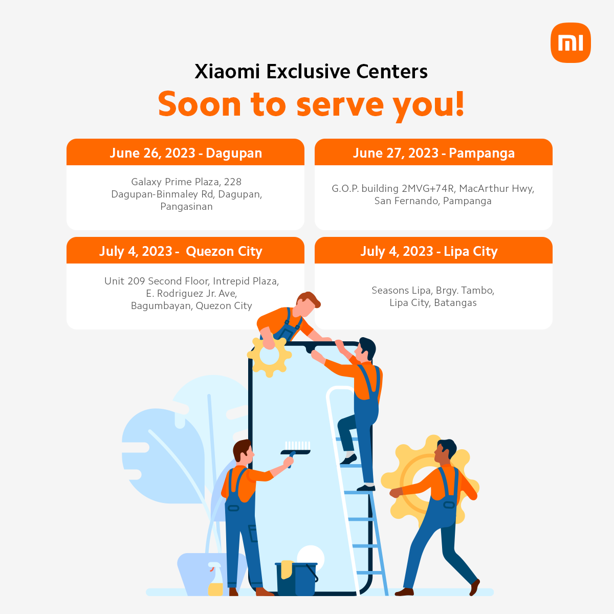 More Exclusive Xiaomi Service Centers (ESC) are coming your way on June 26 in Dagupan, June 27 in Pampanga, and July 4 in Quezon City and Lipa City.