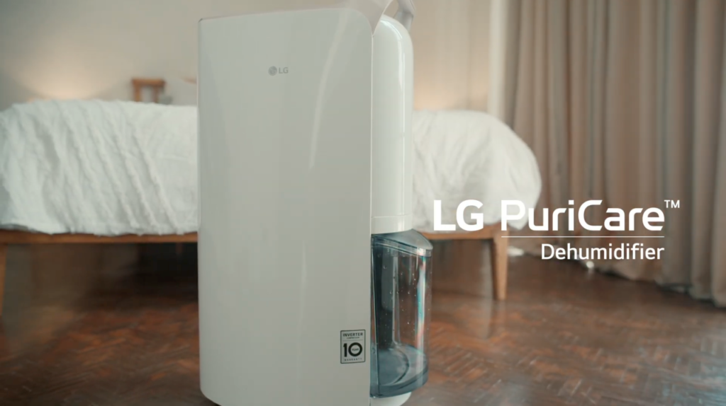 To help manage indoor humidity during the rainy season, consider using a dehumidifier like LG’s PuriCare™ 19L Dehumidifier. It can significantly improve air quality and enhance overall comfort at home. With its sleek design and powerful performance, it blends seamlessly into any modern living space while operating quietly in the background.