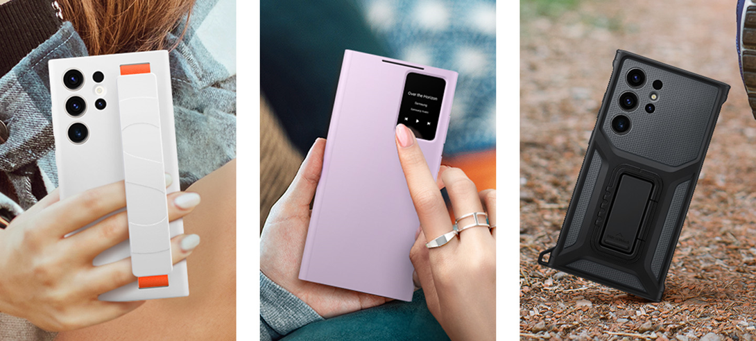[1] Galaxy S23 series cases inclusive of, Clear Case, Silicone Case, Leather Case, Smart View Wallet Case, Silicone Grip Case, Frame Case, Clear Gadget Case and Rugged Gadget Case. Availability of each may vary by region.