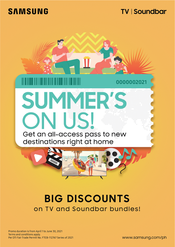 Samsung’s TV and Soundbar bundle offers are available in participating Samsung Authorized dealers nationwide. Don’t miss out on great home entertainment for less this summer, and escape the heat without stepping out!