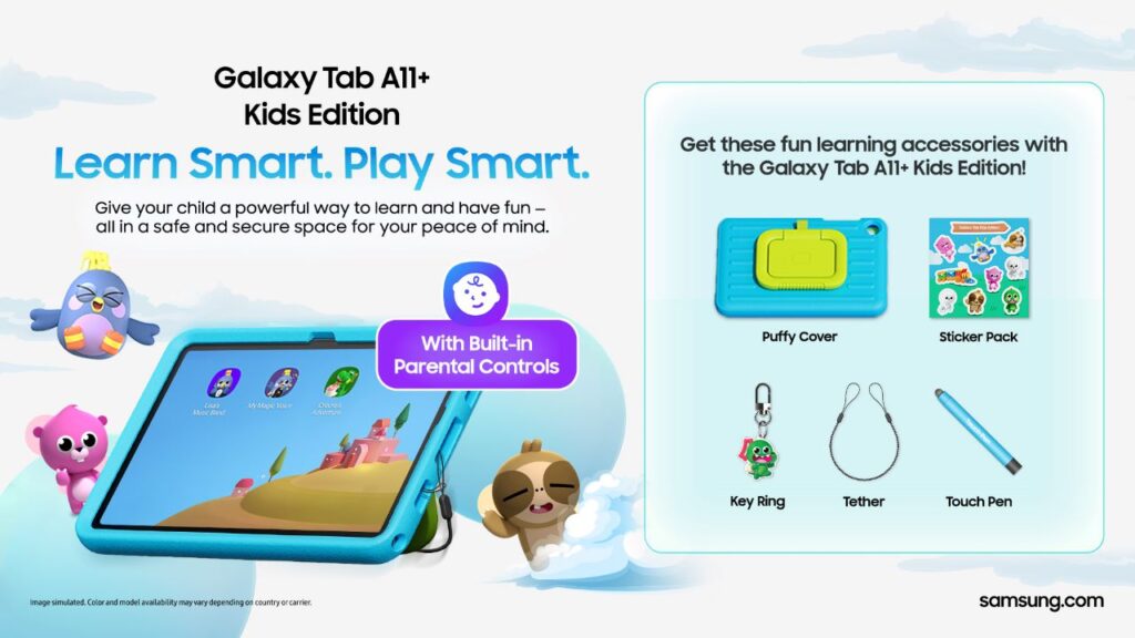 Parenting in a digital age is about embracing new opportunities for children to learn, create, and explore, while keeping them protected every step of the way. Designed for today’s families, the new Galaxy Tab A11+ Kids Edition transforms your kid’s everyday tablet use into a safer, guided digital playground where they can explore, learn, and play with its expansive 11-inch display and fluid 90Hz refresh rate built just for growing imaginations. Parents can have peace of mind knowing every moment is secure, while kids can dive into a world designed just for them.