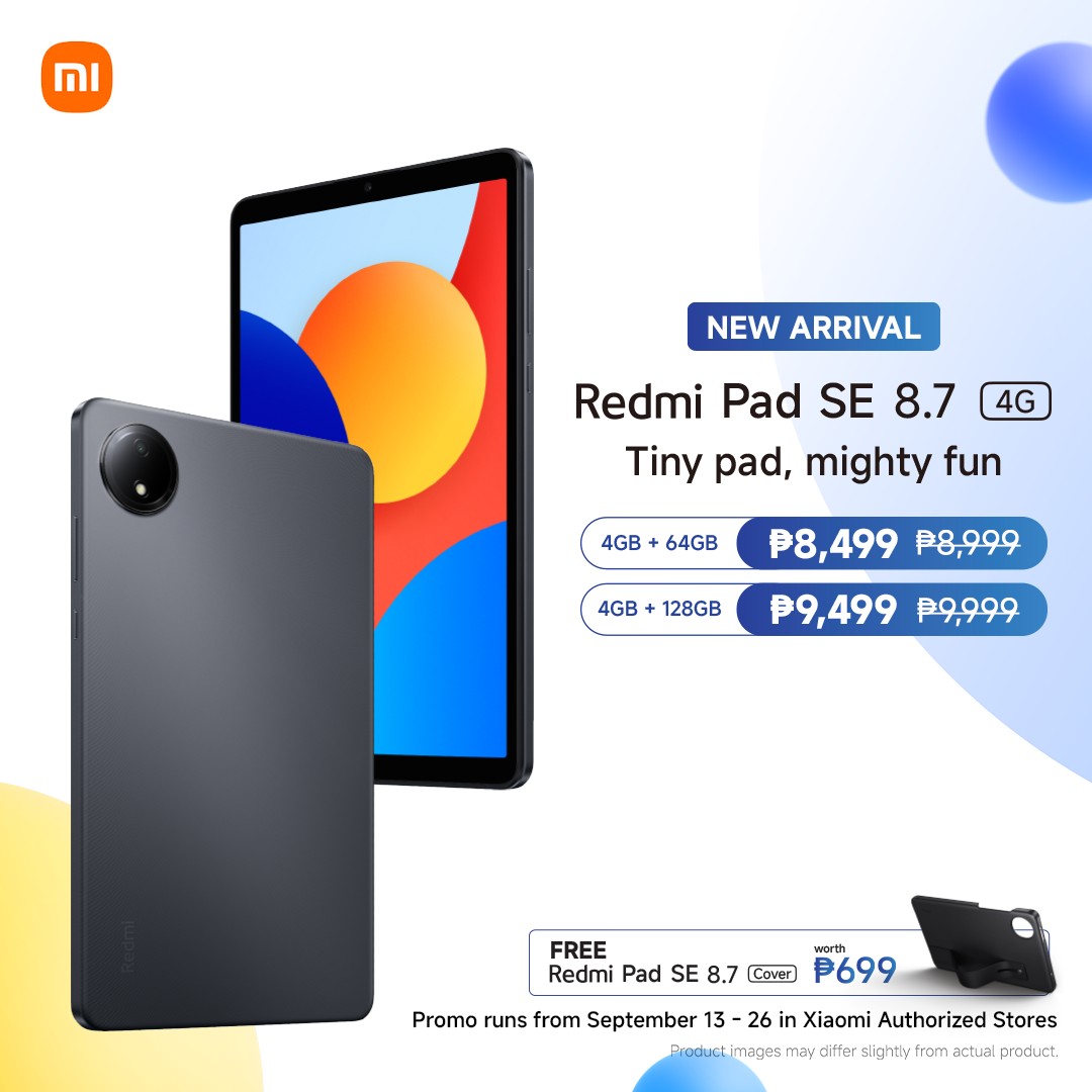 The Redmi Pad SE 8.7 4G is now available in Xiaomi authorized stores for only P9,499 for the 4GB+128GB variant, and P8,499 for the 4GB+64GB variant, with a P500 discount on top of a free cover worth P699 and when you buy from now until September 26, 2024.