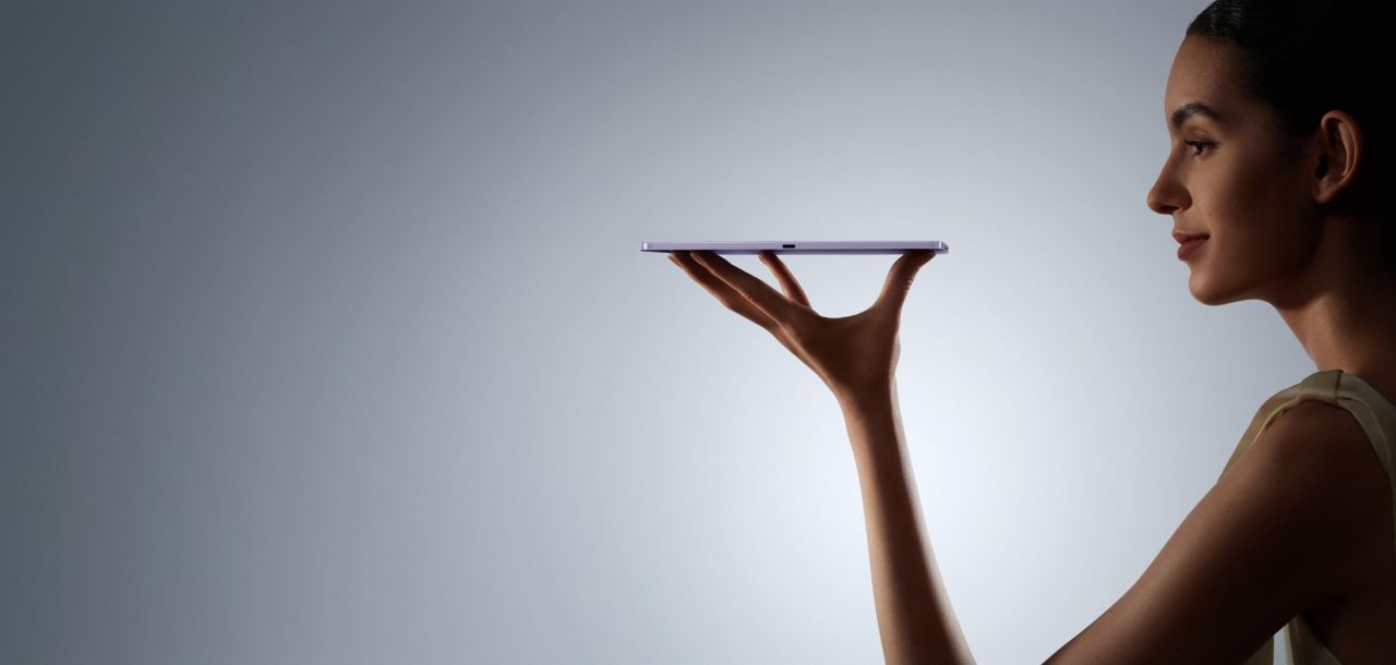 Engineered for ergonomic single-handed usage, Xiaomi Pad Mini measures 132.03mm in width¹¹ and features a micro-arc middle frame and a metal unibody design with micron-level ceramic sandblasting.¹⁷ As the first Android tablet featuring an SoC-centered design, its key components—including speakers, battery, and motors—are symmetrically arranged around the processor, enhancing overall balance and grip comfort. To complement this structural harmony, the 16:10 aspect ratio enhances vertical viewing and productivity. Moreover, Xiaomi HyperAI delivers an elevated productivity experience,² featuring a range of AI-driven tools that include AI Writing,⁶ AI Speech Recognition,⁶ AI Interpreter,⁶ AI Art,⁶ and AI Calculator.⁷ It also integrates Google Gemini,⁸ and supports Circle to Search with Google,⁹ for improved device interaction.