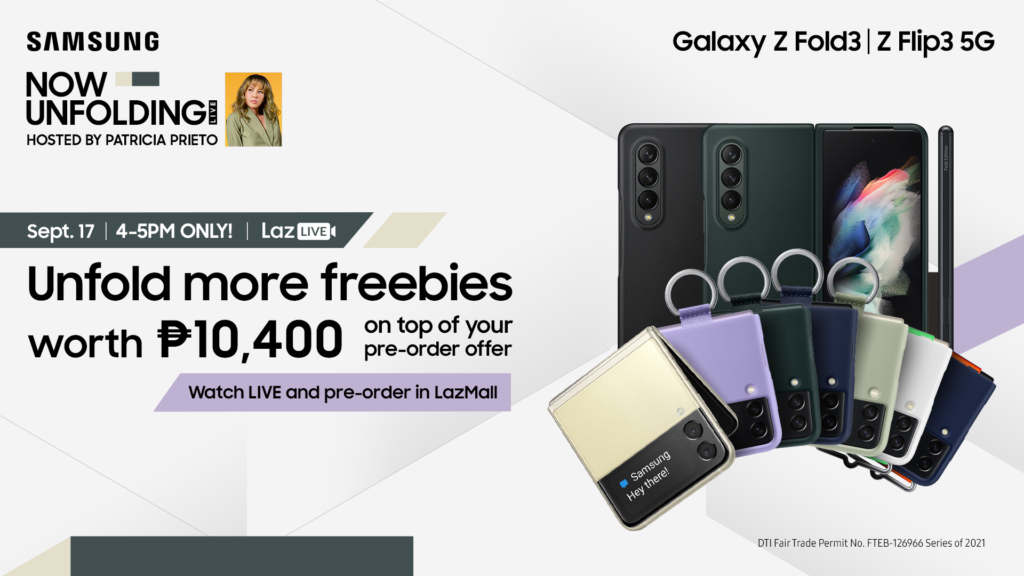 Through surprise vouchers, live viewers who will pre-order the 512GB Galaxy Z Fold3 5G can take home an additional FREE S Pen Pro worth Php 6,499 SRP, plus a FREE Leather Cover worth Php 3,999 SRP. For those who pre-order the 256GB variant, they can get a FREE Flip Cover with S Pen worth Php 3,999 SRP.