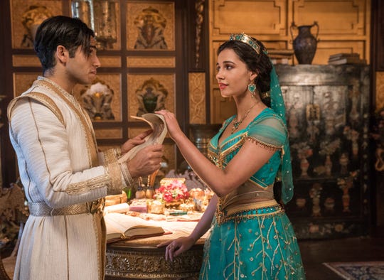 The amount of detail that went into the costumes and production design is truly impressive, you couldn’t help but just be in awe of the colorful and updated costumes the characters wear. Speaking of costumes, I think its important to note that the 2019 version also features more conservative costumes not only for Jasmine but even for Aladdin as well. In the original animated movie, Princess Jasmine wears a midriff ensemble, showing her belly button. In the live action version we see Naomi Scott, who plays Princess Jasmine covered up. Her famous turquoise outfit has more layers and most importantly covers her stomach. Which I think is a good decision in this updated version, hiding the tiny waists the past Disney Princesses were often seen with, to help spread body positive images for kids seeing the film, and you wouldn’t want to be distracted by a tiny waist in a movie as grand as “Aladdin.” Unlike “Beauty and the Beast” though which down played Belle’s yellow ball gown (yes, I was disappointed) the costume designers, go all out with Jasmine’s outfits (clap, clap) featuring ensembles truly deserving of a Princess, these costumes alone make it worth seeing on the big screen. If you would notice, Aladdin (Mena Massoud) gets a shirt now! The original Aladdin was only wearing a purple vest, basically making him topless. The addition of a shirt to his costume is much welcome.