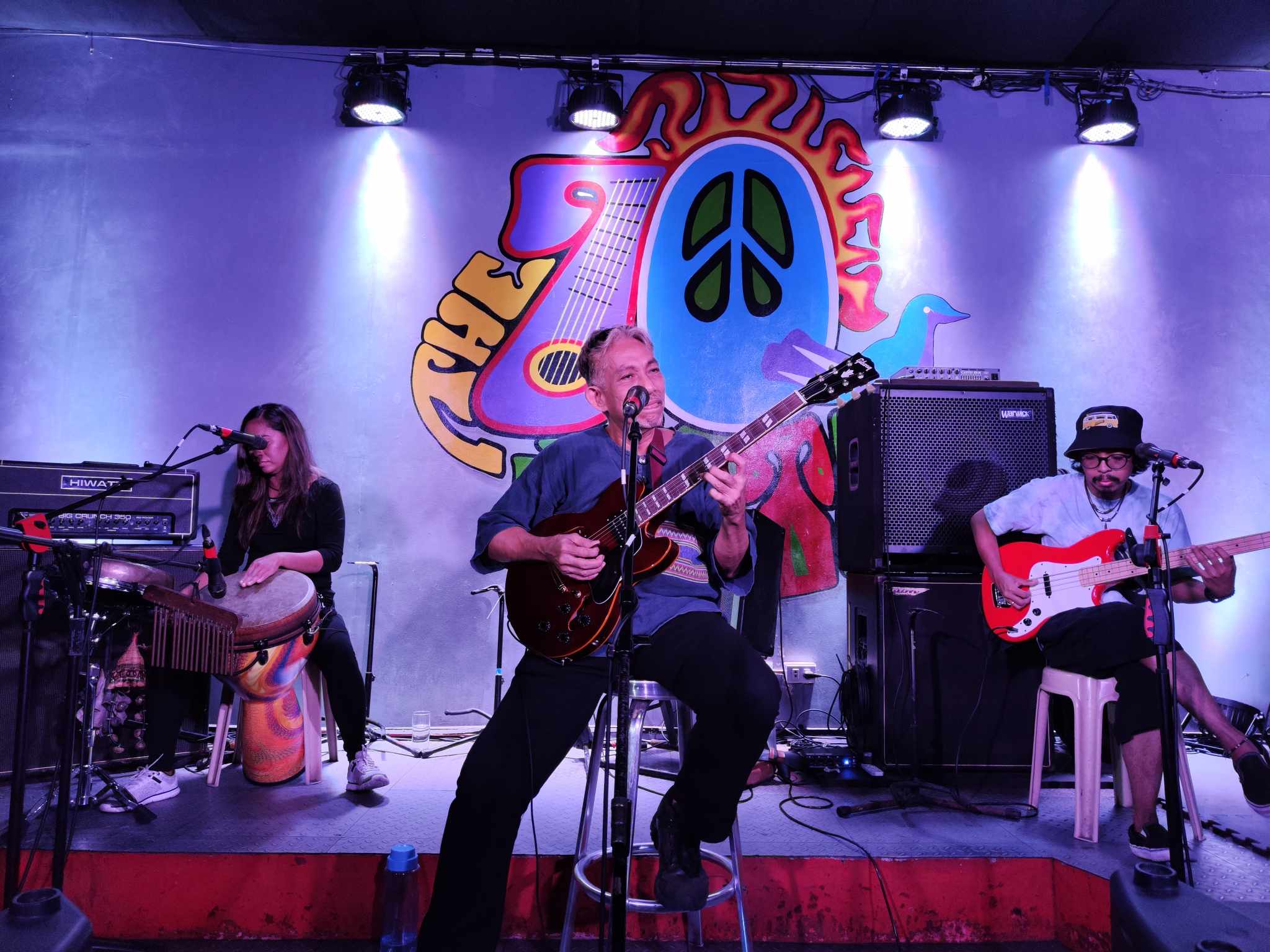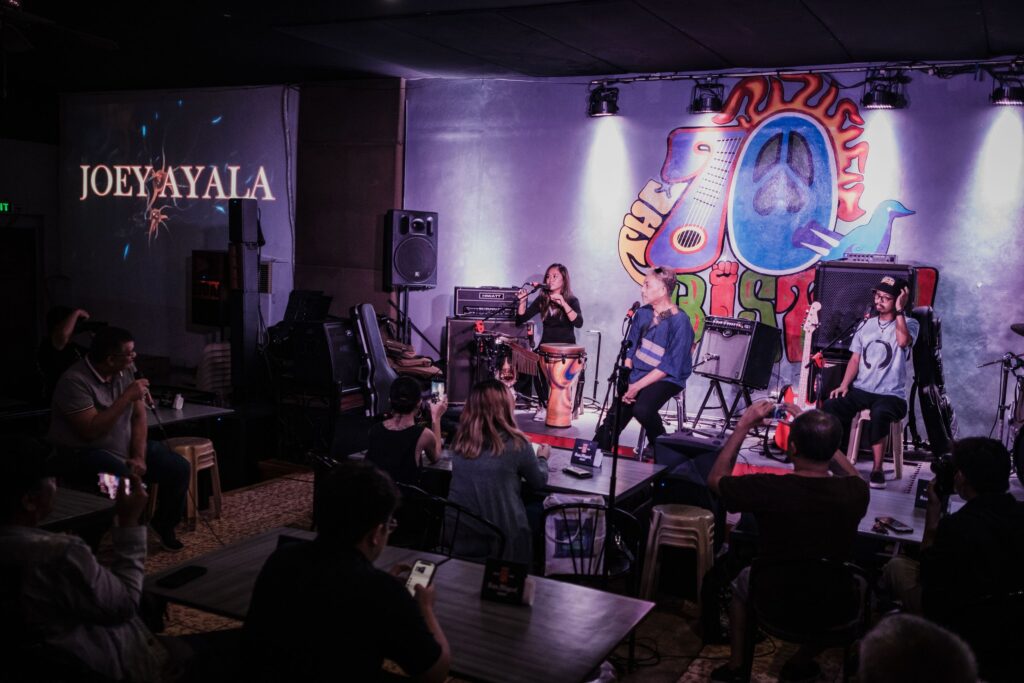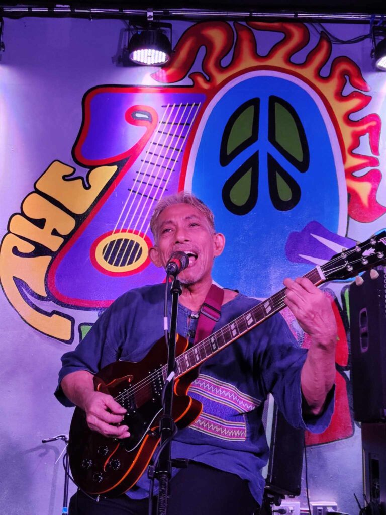 We are at the iconic 70’s Bistro bar in Anonas, the bar has seen its fair share of performances from some of the country’s leading and up and coming musical acts. I’ve had some pretty amazing memories at 70s Bistro, some of which are rocking out to Mayonnaise and laughing at Jay Contreras of Kamikazee’s antics as he jumps from one table to the next keeping the audience entertained. But my favorite fact about the bar, which is celebrating its 32 years (and that’s a feat, considering the fickle state of the live local music scene) is that it was the setting for when Angel Locsin beat the living daylights out of Mocha Uson in the film ‘Four Sisters and a Wedding’.