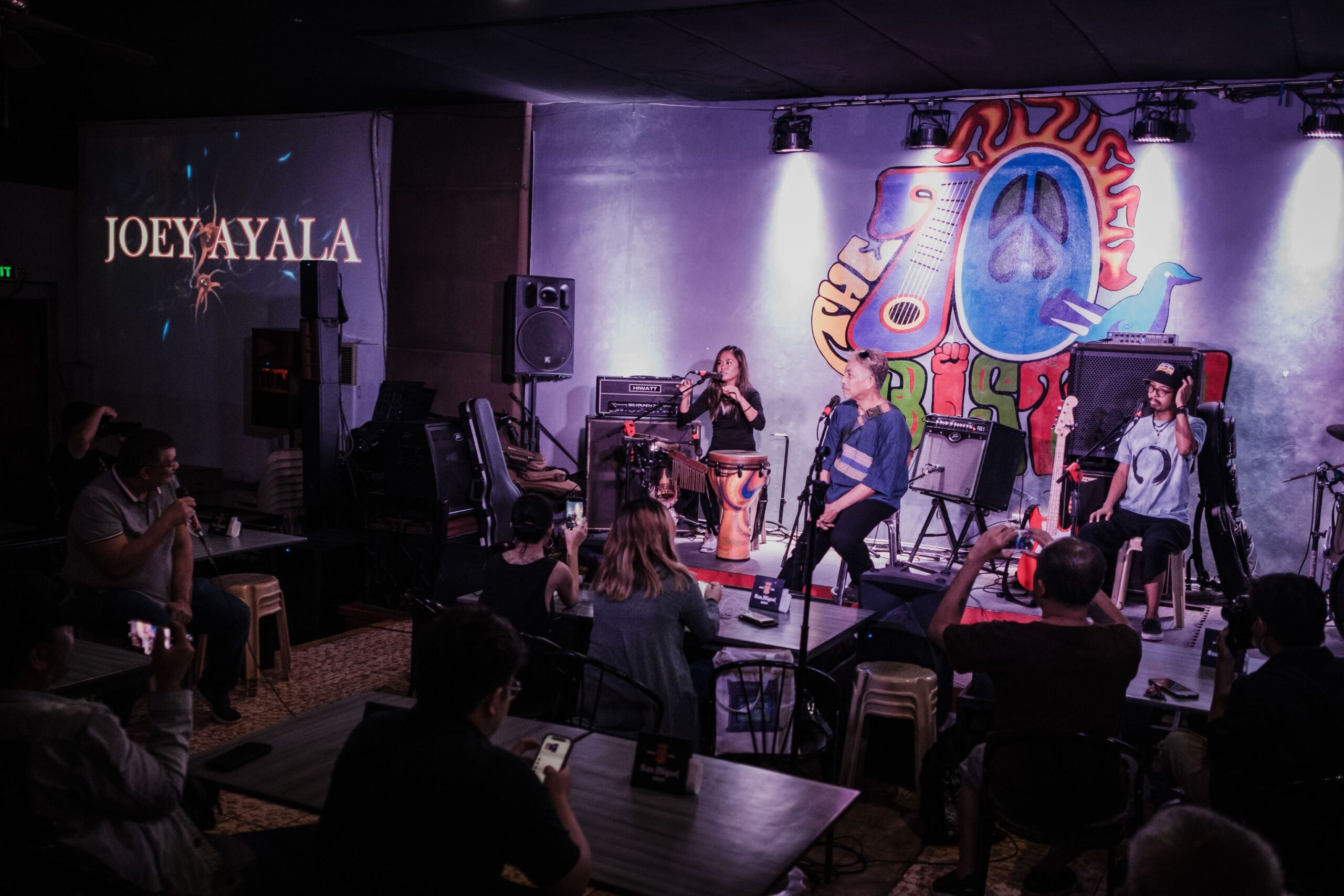 It’s an early Tuesday evening, Joey Ayala gets off the stage after doing a sound check with his band, he goes to each media present and gives a firm and hearty handshake. He has a big and bright smile and his eyes have a bit of twinkle in them, as he looks straight into yours.