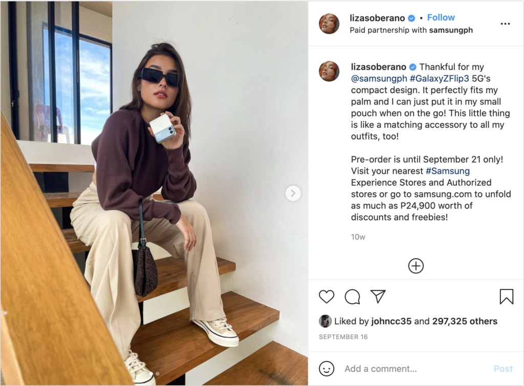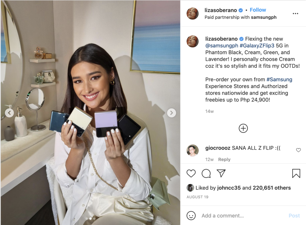“I love connecting with my followers on social media. Sharing my life with them through photos, stories, and videos is my way of thanking them for their support. I love how the Galaxy Z Flip3 5G lets me do that while looking like a stylish accessory,” Soberano ends.