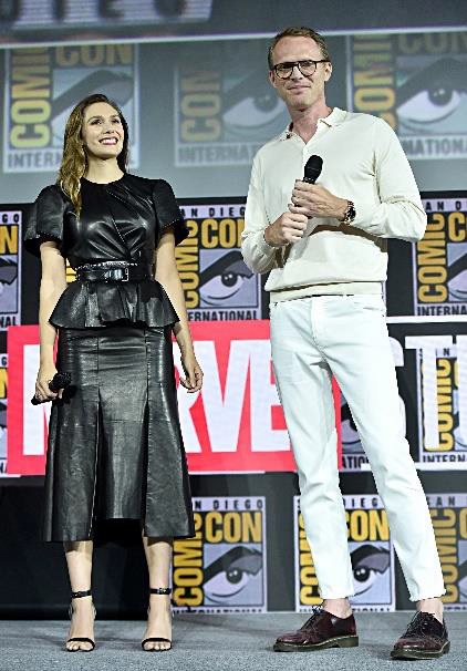 SAN DIEGO, CALIFORNIA – JULY 20: Elizabeth Olsen and Paul Bettany of Marvel Studios’ ‘WandaVision’ at the San Diego Comic-Con International 2019 Marvel Studios Panel in Hall H on July 20, 2019 in San Diego, California. (Photo by Alberto E. Rodriguez/Getty Images for Disney)
