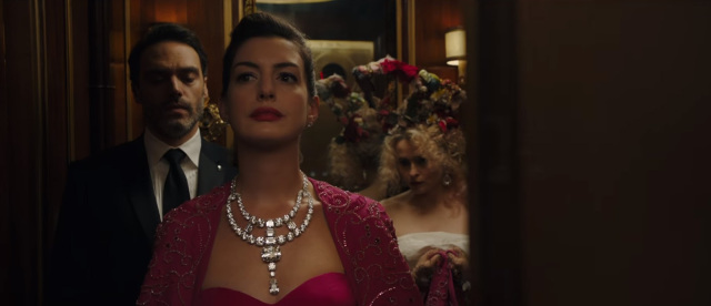 Well, not really any piece in the museum but a legendary Cartier necklace, the Toussaint which is about $150 million worth of diamonds. Because cash is nice but diamonds are a girl’s best friend after all. Now all they have to do is to get the diamonds on the neck of a certain Hollywood “It” girl, Daphne Kluger (Anne Hathaway) and in order to do that, they hire Rose Weil, (Helena Bonham Carter) an 80’s has been fashion designer drowning in debt with the IRS. She’s my second favorite thing about the movie, Carter’s kooky and seemingly meek character is on point.