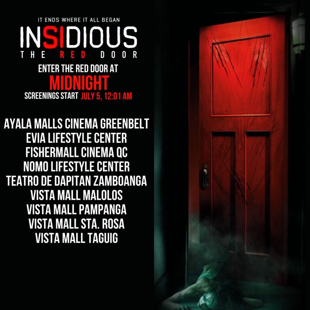 Midnight is the witching hour! Be among the first to see Insidious: The Red Door by booking tickets for July 5, at 12:01 am, in these participating cinemas: