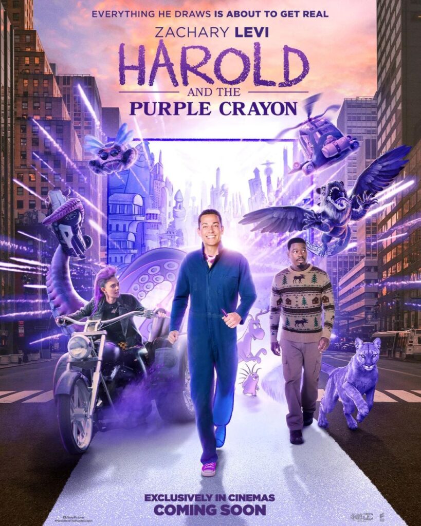 Inside of his book, adventurous Harold (Zachary Levi) can make anything come to life simply by drawing it. After he grows up and draws himself off the book’s pages and into the physical world, Harold finds he has a lot to learn about real life – and that his trusty purple crayon may set off more hilarious hijinks than he thought possible. When the power of unlimited imagination falls into the wrong hands, it will take all of Harold and his friends’ creativity to save both the real world and his own. Harold and the Purple Crayon is the first film adaptation of the beloved children’s classic that has captivated young readers for decades.