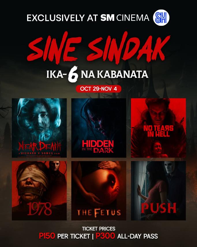 Sine Sindak, SM Cinema’s horror film festival, is back to send chills down your spine from October 29 to November 4 at all SM Cinema branches nationwide.Now on its sixth year, Sine Sindak 6 features six spine-tingling films guaranteed to keep audiences on the edge of their seats: 1978, Hidden in the Dark, Near Death, No Tears in Hell, Push, and The Fetus.