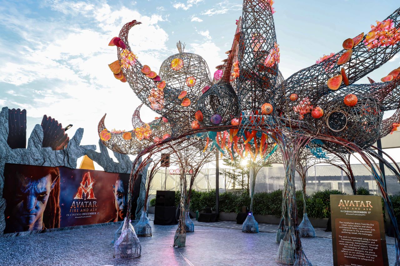Opening the Philippine Premiere of ‘Avatar: Fire & Ash’ last December 12, 20th Century Studios Philippines launched an art installation made in collaboration with Filipino contemporary artist, Leeroy New. This masterpiece draws inspiration from the Mangkwan Clan’s color palette and sharp architectural forms interwoven with a Filipino element referencing the precolonial seafaring vessel, the balangay. Staying true to New’s style, this installation is made with a metal framework with painted bamboo and rattan weaving, mixed with manipulated industrial material, and found objects. Through this interplay of natural and repurposed elements, the piece reflects on people’s shifting relationship with the environment and our responsibility to safeguard it. The installation will be in the 3F MOA Sky at SM Mall of Asia until January 4, 2026.