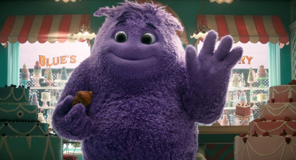Blue is an extra-large and extremely huggable imaginary friend who is notably not actually blue. “Everyone calls him Blue, but he is purple,” says producer Andrew Form. “John decided that the child who invented him was color-blind. Blue is very lovable, and like all IFs, just wants to get back to the kid who created him and reclaim that life.”