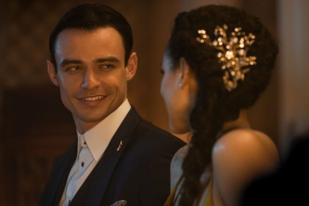 “Thomas has that X factor,” says director Jessica M. Thompson. “You can’t not watch him. Part of it is the way he looks – he has these incredible features, so sharp and defined. But the way he commands the space and handles himself… he brings a lot of layers to the role. It’s almost like he’s playing two characters – the charming romantic Lord of the Manor, our leading man… and then he reveals who he really is. That could have been difficult to balance, but Thomas commands the space and makes it look easy.”