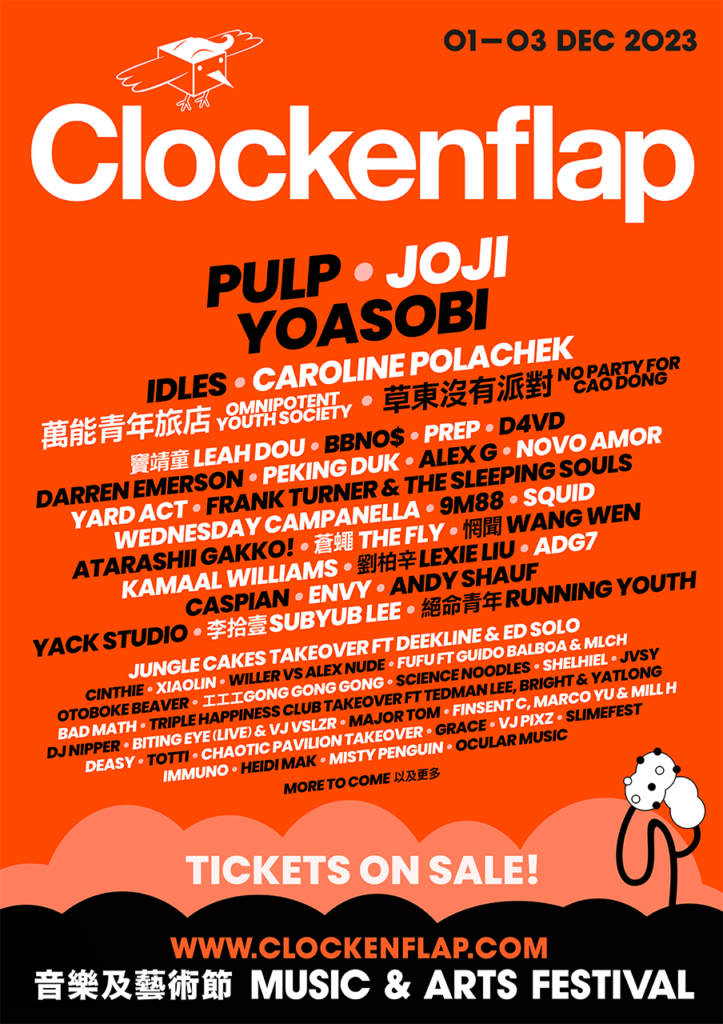 [Hong Kong, September 19, 2023] Clockenflap, Hong Kong’s biggest international outdoor music and arts festival, has a massive lineup drop today for its next event, giving fans their first taste of what they can expect to see at Central Harbourfront from Friday 1 to Sunday 3 December 2023. Following on from its sold-out three-day show in March 2023, the 13th edition of the festival will feature a forward-thinking lineup showcasing a truly distinctive and diverse array of artists. From internationally acclaimed acts to regional and local gems, this lineup promises an unparalleled experience that cannot be found anywhere else in the world.