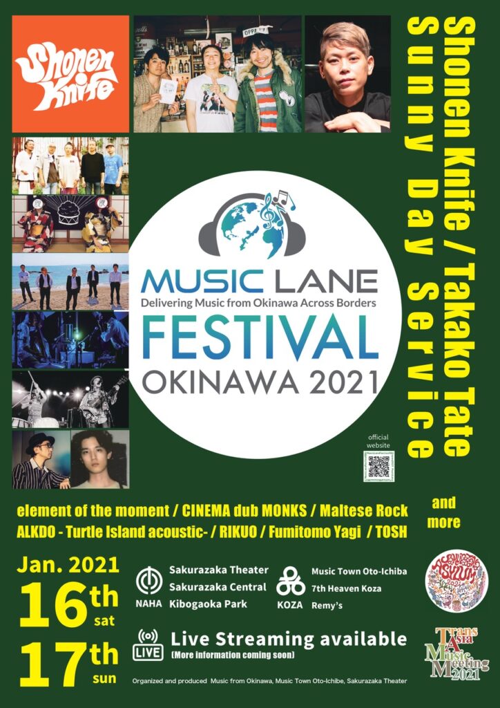 (Okinawa City, Japan — December 22, 2020) The trend of hybrid and online music showcase and conference festivals is set to continue next year with the debut edition of Music Lane Festival Okinawa in Japan on January 16 and 17, 2021 at select venues in the cities of Okinawa and Naha. The foreign lineup and its international conference program—the annual Trans Asia Music Meeting (TAMM)—will stream online for free.