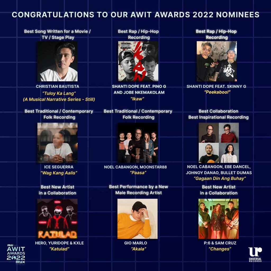 Universal Records Philippines is deeply grateful to all of the nominations and aspires to continue doing its best to do more meaningful music releases in the future.